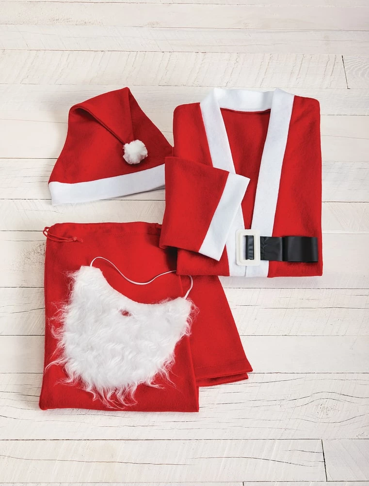 - The For Living Adult Felt Santa Suit includes a shirt, pants, hat, belt and beard for the complete Santa look
