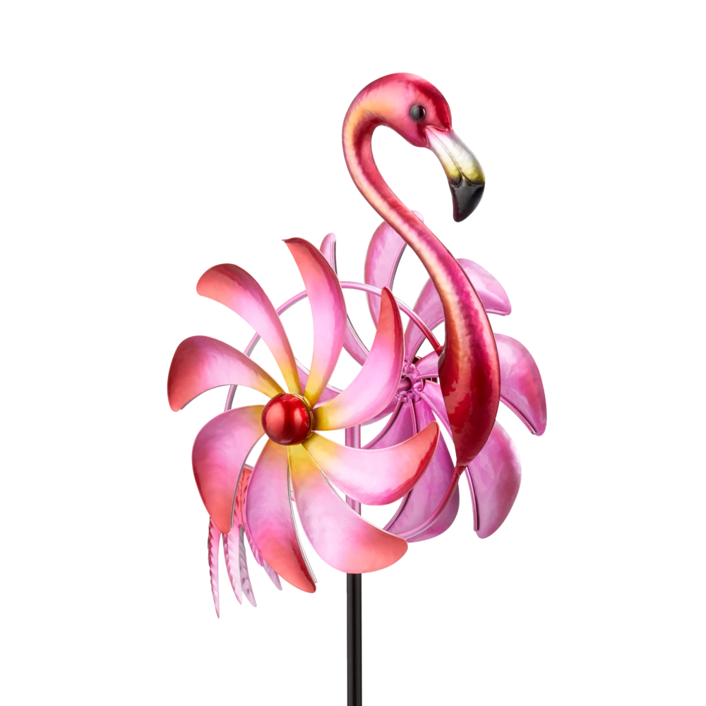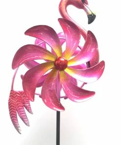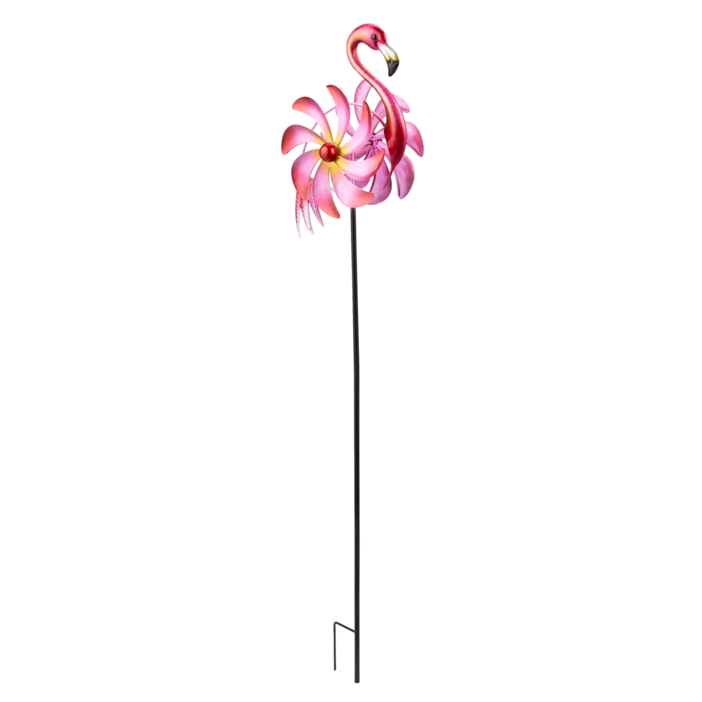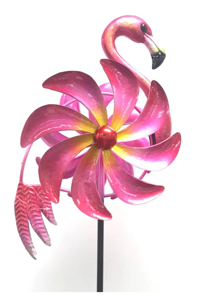 - The For Living Flamingo Wind Spinner Garden Stake features colourful flamingo wings that spin 360° in the wind