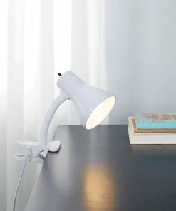 - Handy lamp clips easily to your desk, bedframe or shelf