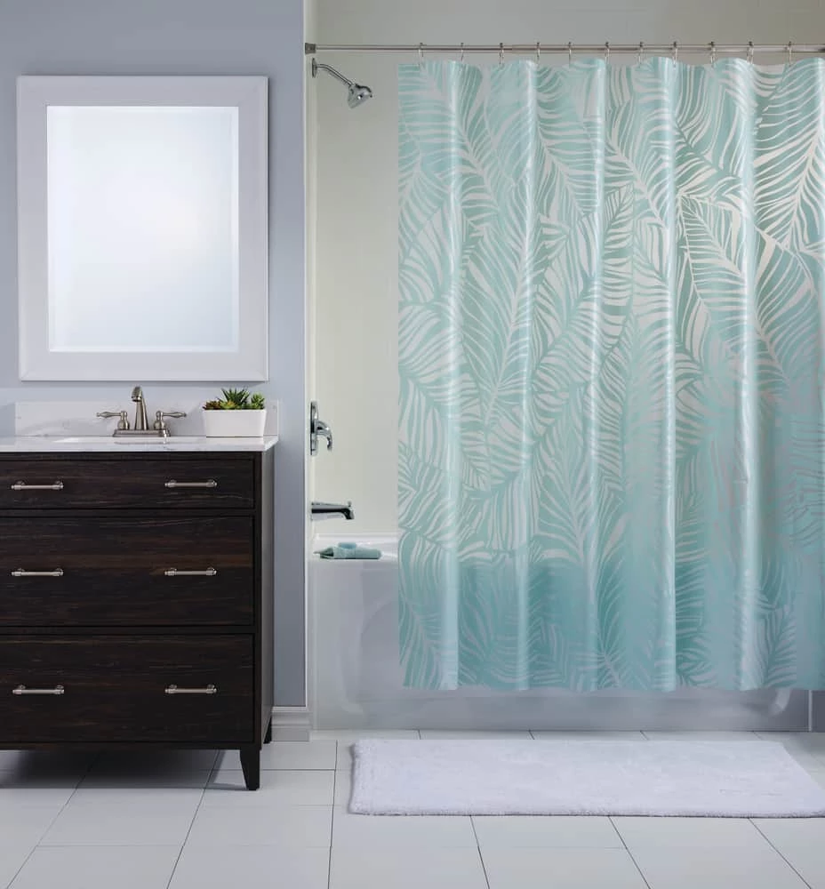 Update your bathroom with the For Living Green Leaves PEVA Shower Curtain