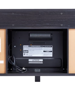 - Features outlet holes in the fixed shelve of unit to easily hook up your electronics