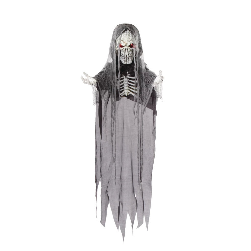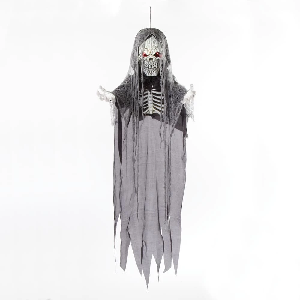 - Startle unsuspecting guests with the For Living Battery-Operated Hanging Reaper