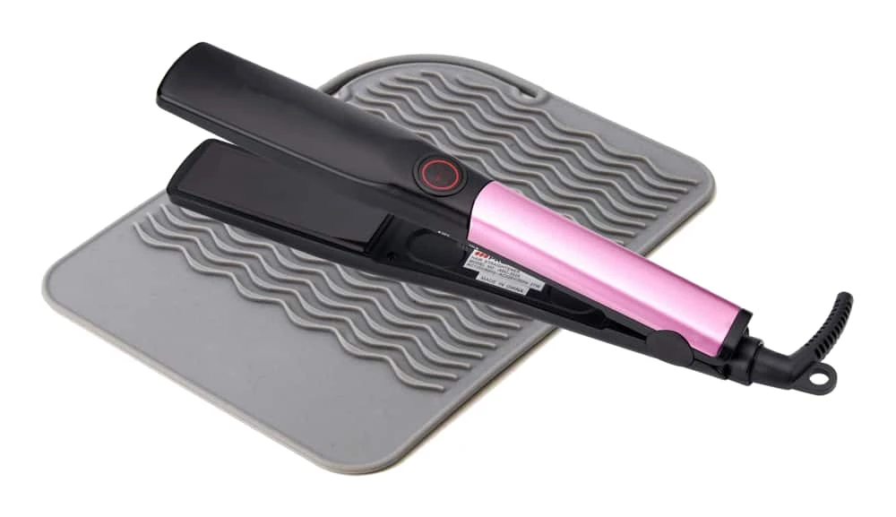 - The For Living Heat-Resistant Silicone Styling Mat protects delicate surfaces from hot curling irons and flat irons