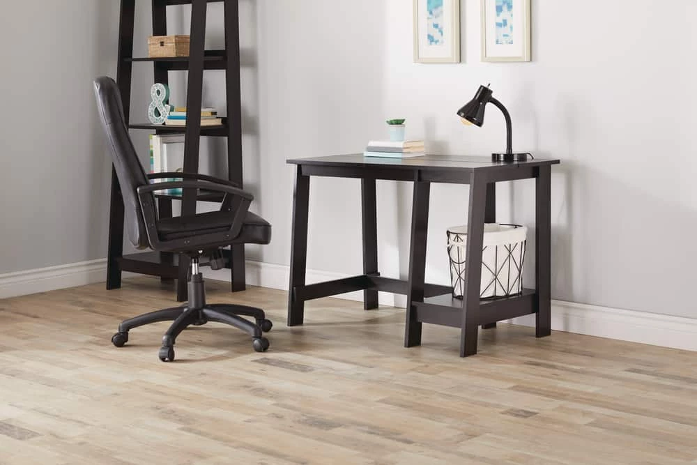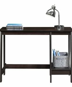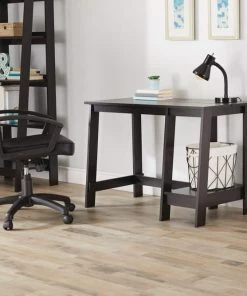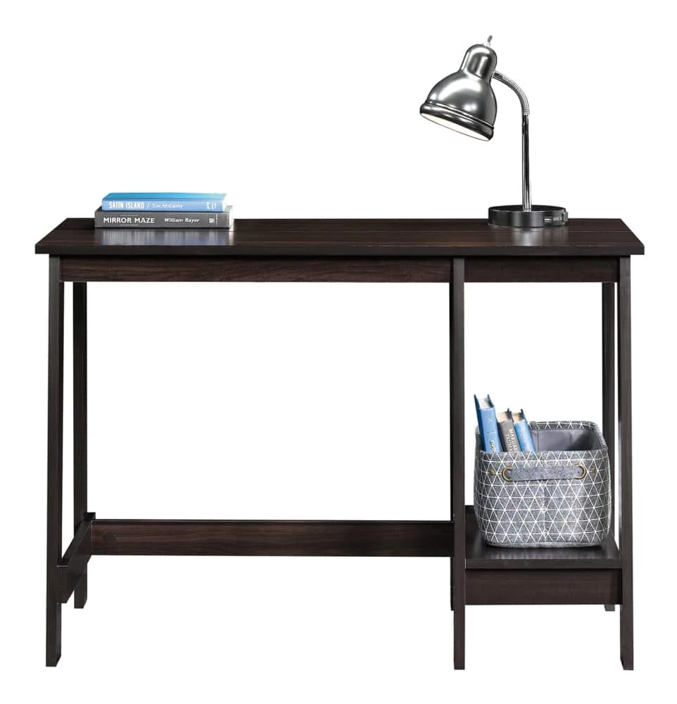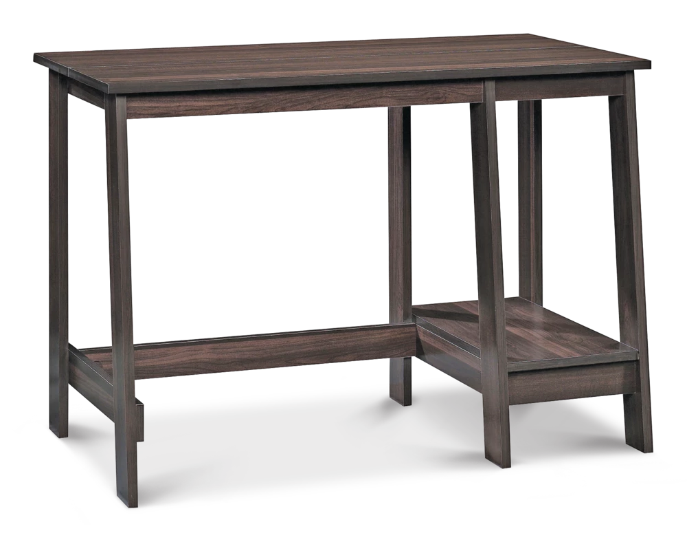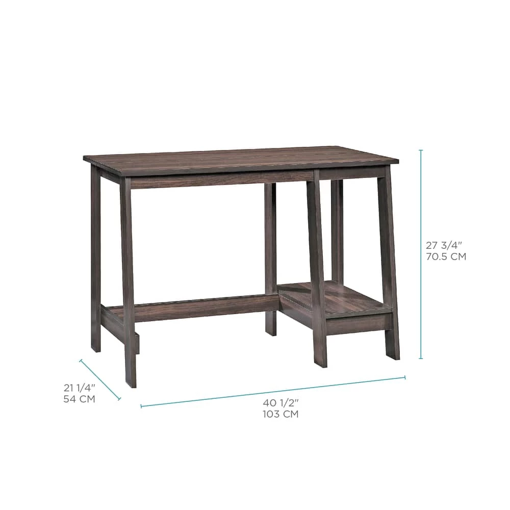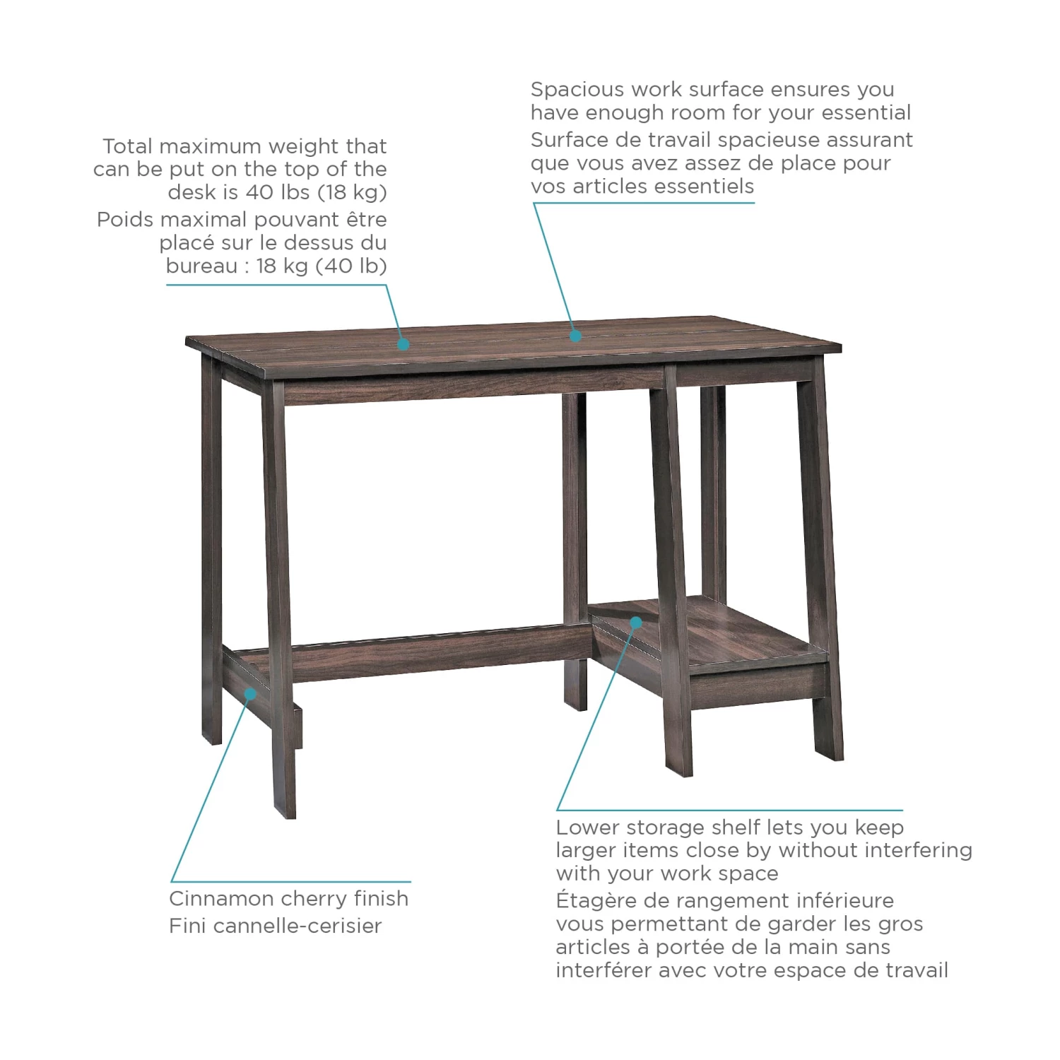With its spacious work surface, the For Living Trestle Desk is ideal for students or professionals who need a comfortable place to work and extra shelving for storage. This stylish office desk features a 40-1/2 inch by 21-1/4″ tabletop, which can easily accommodate your laptop, printer, desk lamp, speakers, and any other essentials you might need to get the job done. The top shelf can hold up to 40 pounds of weight and easily holds up to daily wear and tear, ensuring long-term durability. With a built-in storage shelf underneath the work surface, this office desk offers ample storage space for other items such as textbooks, making the desk a great fit for students in their dorm room or professionals in their home office. The cinnamon cherry finish offers a warm, comfortable aesthetic that effortlessly complements any traditional or modern decor. This home office desk is compatible with all items in the Trestle collection, including the Trestle media console and bookcase, to help you achieve a cohesive look in your office, family room, dorm room, or den. This modern desk comes with everything you need to assemble it for quick and easy setup.