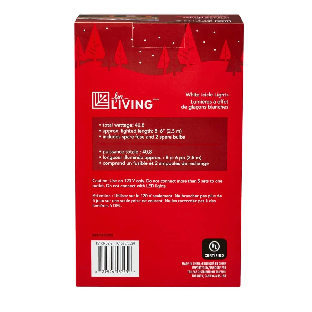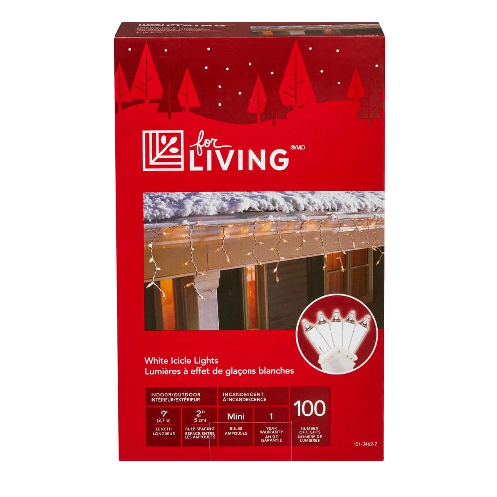 - Enhance your outdoor holiday décor with the For Living Incandescent 100 Icicle Lights that create a festive holiday look