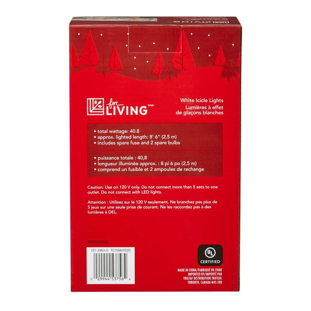 Turn your home into a winter wonderland with the For Living Incandescent 100 Icicle Lights. They feature clear lights that create a dazzling effect anywhere they are placed. These Christmas icicle lights can be displayed indoors or across outdoor spaces, and they are linkable up to five strands. Four extra lights are included for easy replacement. Place across fences, along porch roofs, or on greenery for a glowing appearance.