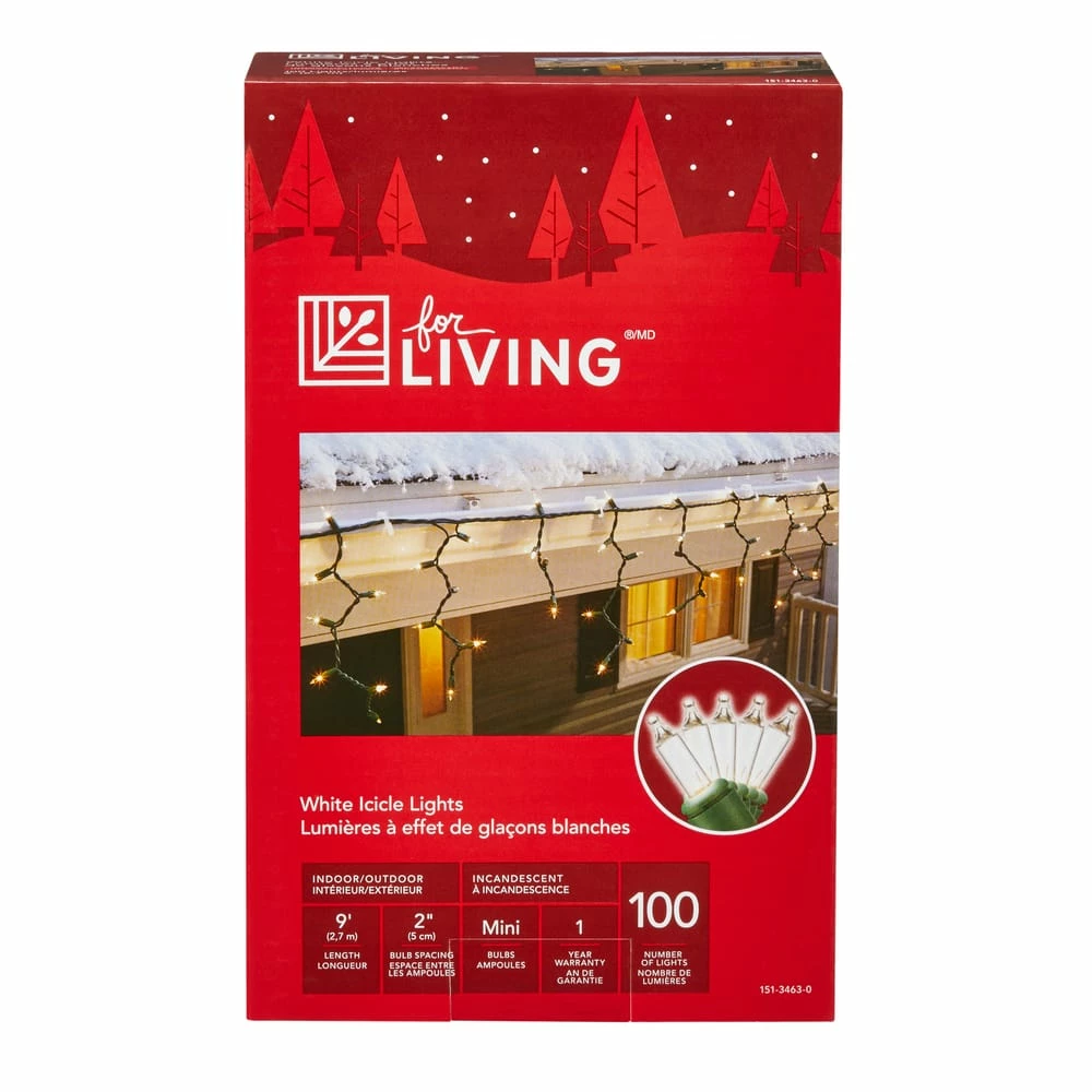 - Enhance your outdoor holiday décor with the For Living Incandescent 100 Icicle Lights that create a festive holiday look