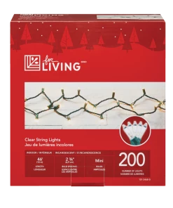 Transform your home into a whimsical winter wonderland with the For Living Indoor 200 Mini Incandescent Lights. They come with 200 clear bulbs per strand, and are linkable up to two strands, giving you plenty of versatility in designing your lighting display. The clear colour of these mini incandescent lights gives them an elegant appearance to add ambiance to your holiday décor. They work well along mantels, railings or around the tree.