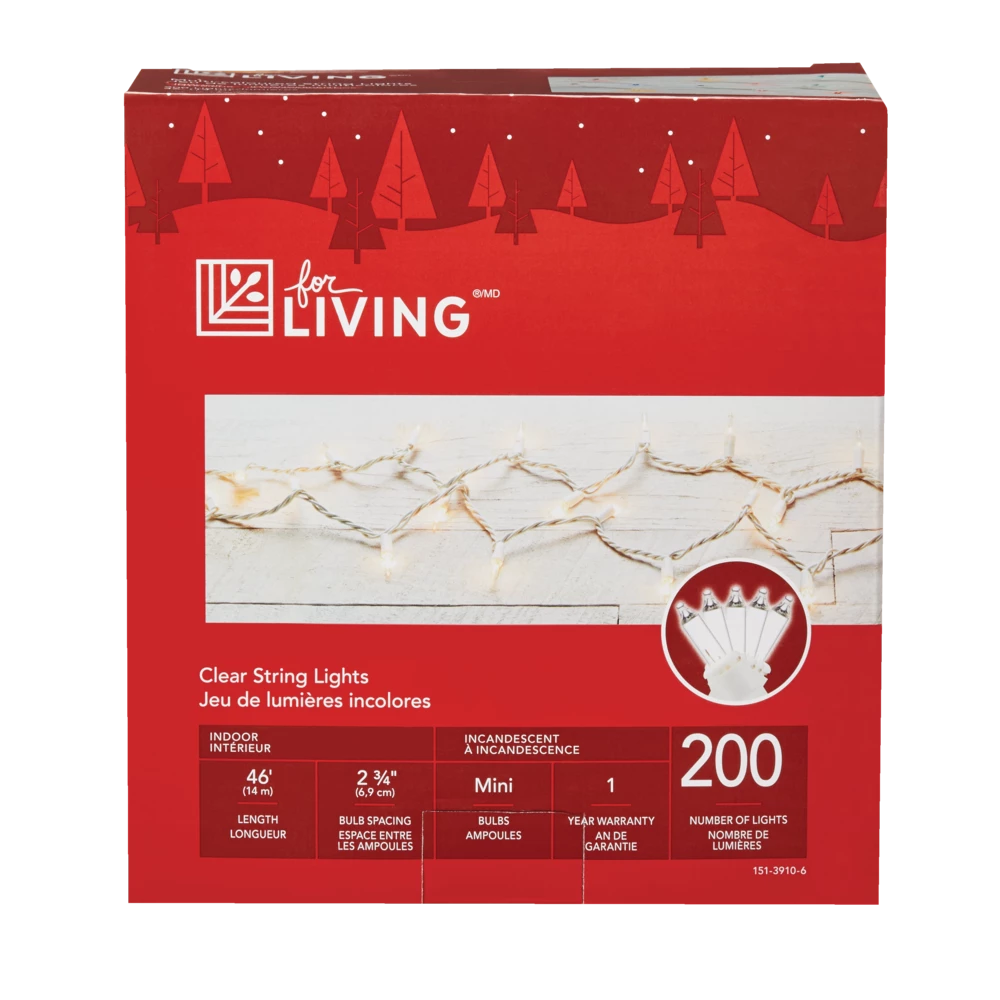 - The For Living Indoor Mini Incandescent Lights feature 200 clear lights to enhance your holiday décor