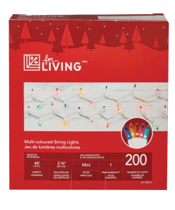 - The For Living Indoor Mini Incandescent Lights feature 200 multi-coloured lights to enhance your holiday décor