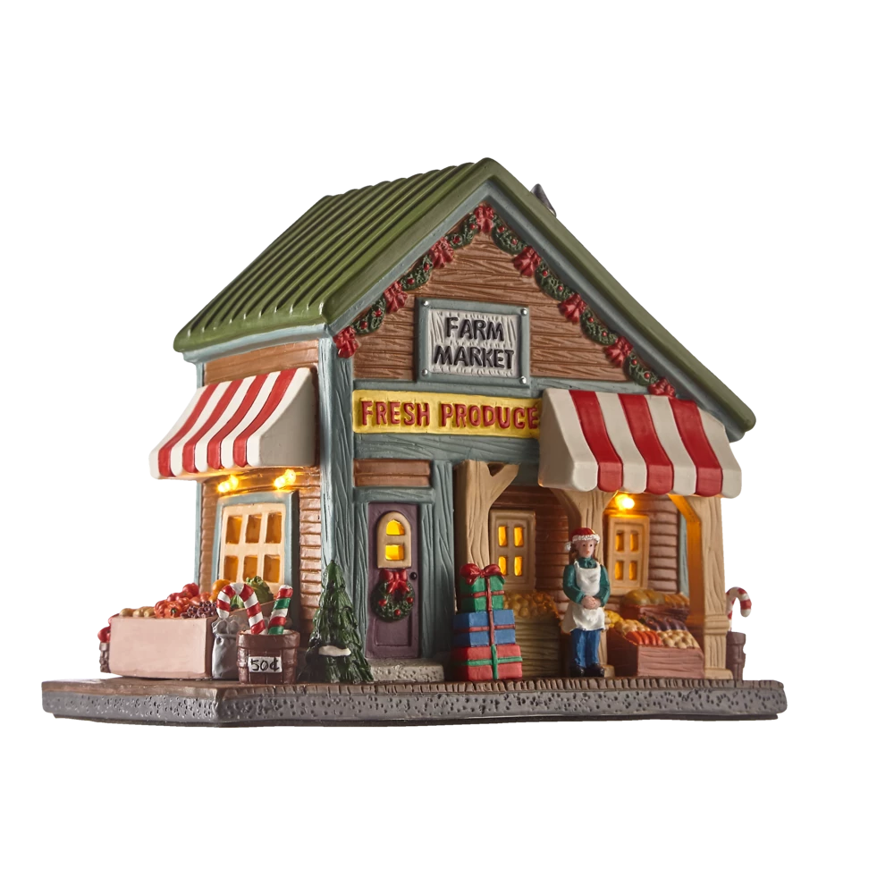 - The For Living Farmers Market Village Scene is sure to attract many admirers, whether it’s included as part of a Christmas village or enjoyed on its own