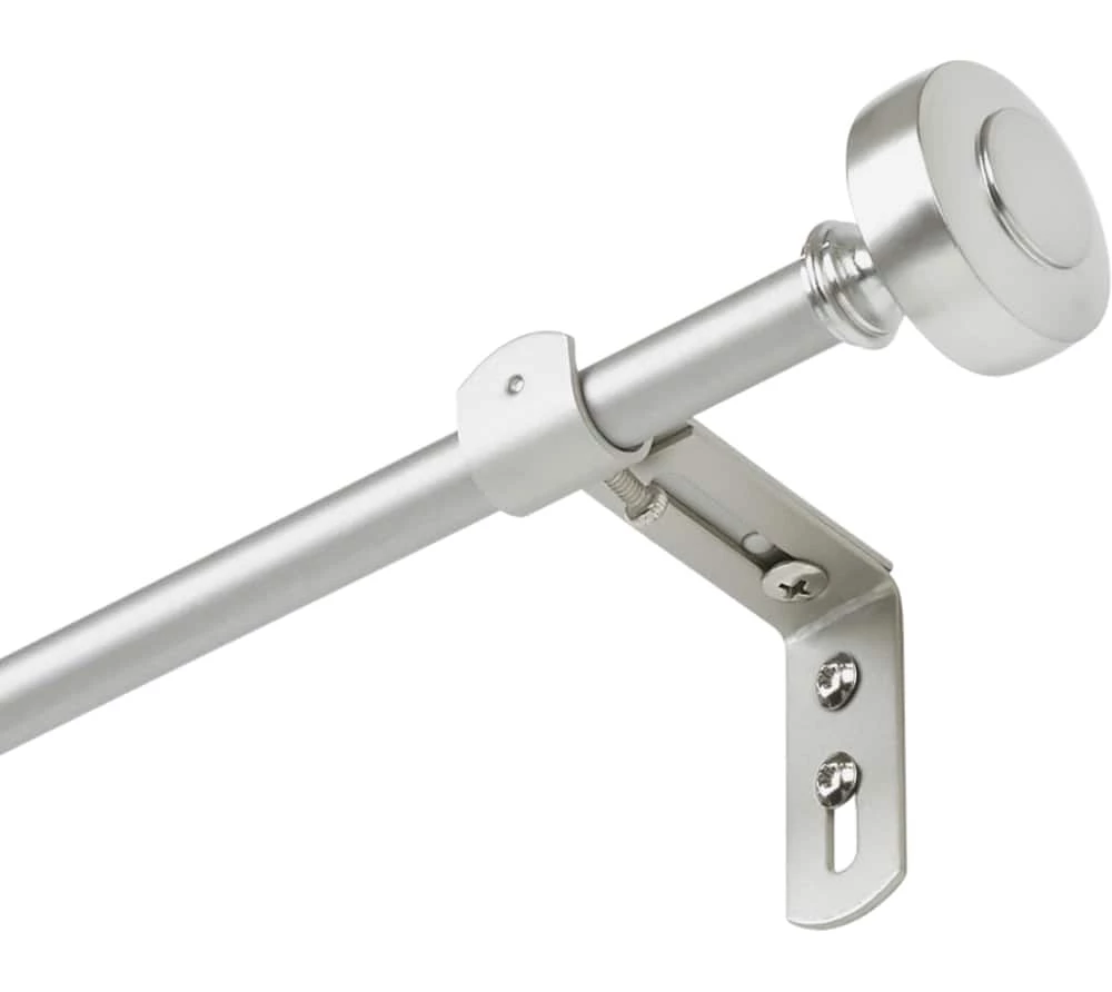Add a stylish modern look to any window treatment with a For Living Loft Knob Café Curtain Rod. This adjustable curtain rod features a brightly polished nickel finish with stylized ends to help display window hangings at their best. This decorative curtain rod measures 1/2″ in diameter and telescopes to 128.91 cm, allowing you to customize the cafe curtain rod to fit your needs. This telescoping curtain rod includes all the hardware required for easy installation.