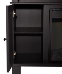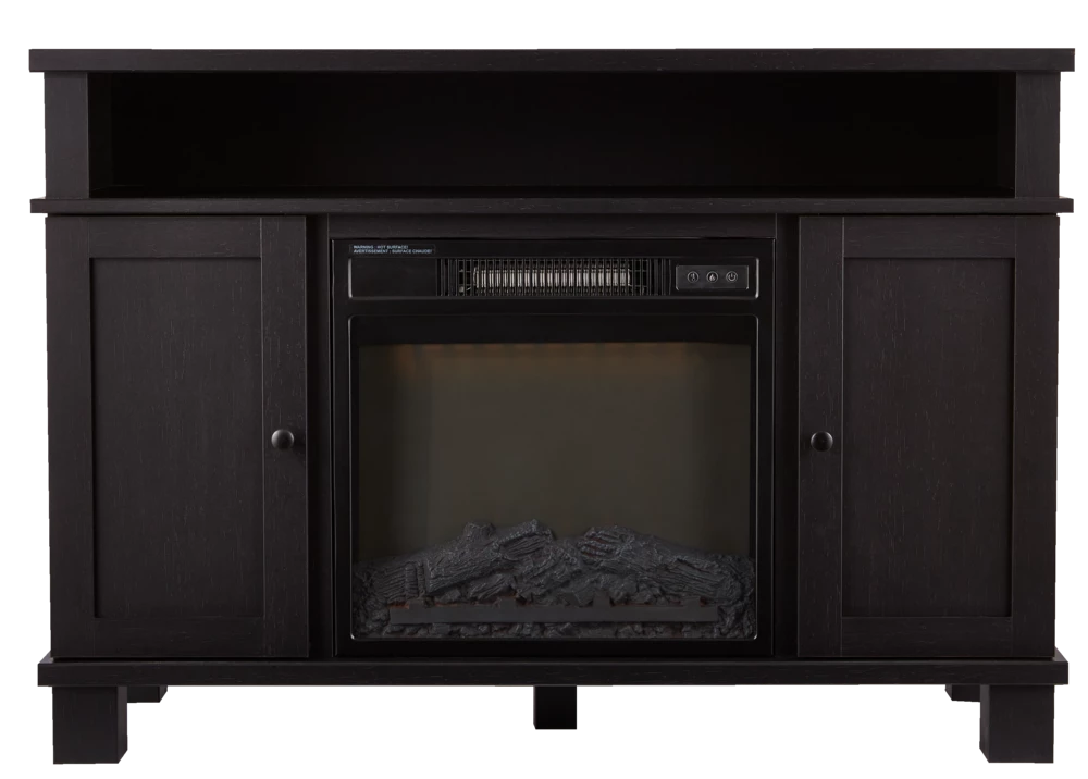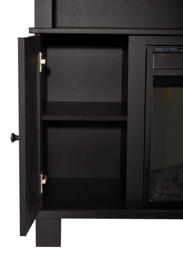 - For Living Media Fireplace has a textured black oak laminate finish with matte black knobs