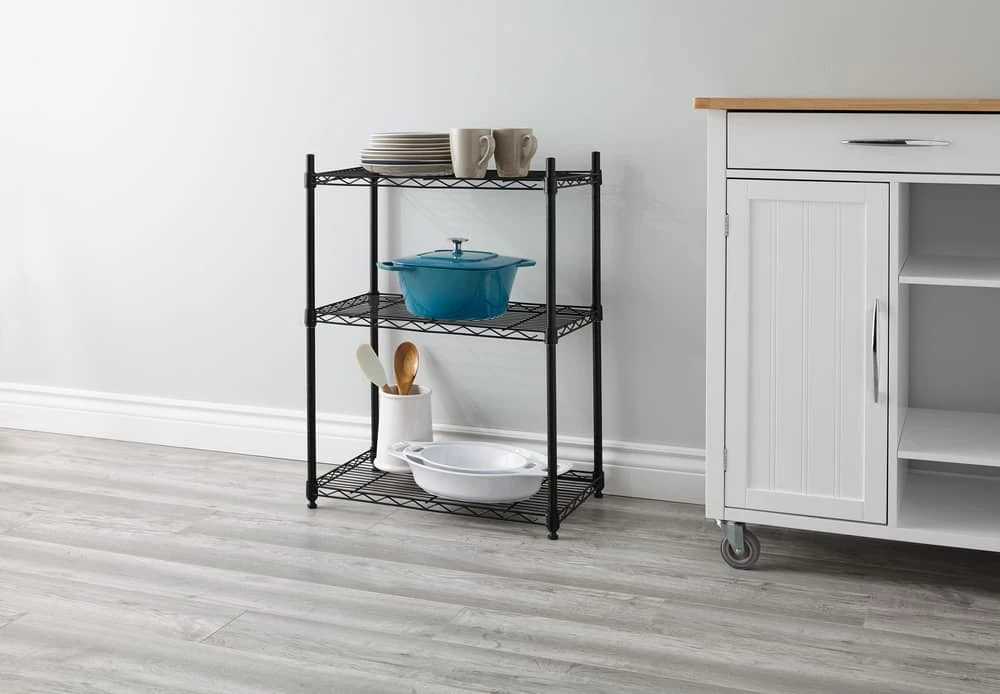- The For Living 3-Tier Wire Shelf is made with a durable and long-lasting powder-coated steel frame