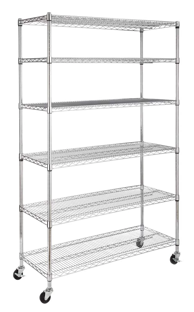 - The For Living Heavy-Duty 6-Tier Wire Shelf with Castors can organize any room using its 6 height-adjustable shelves