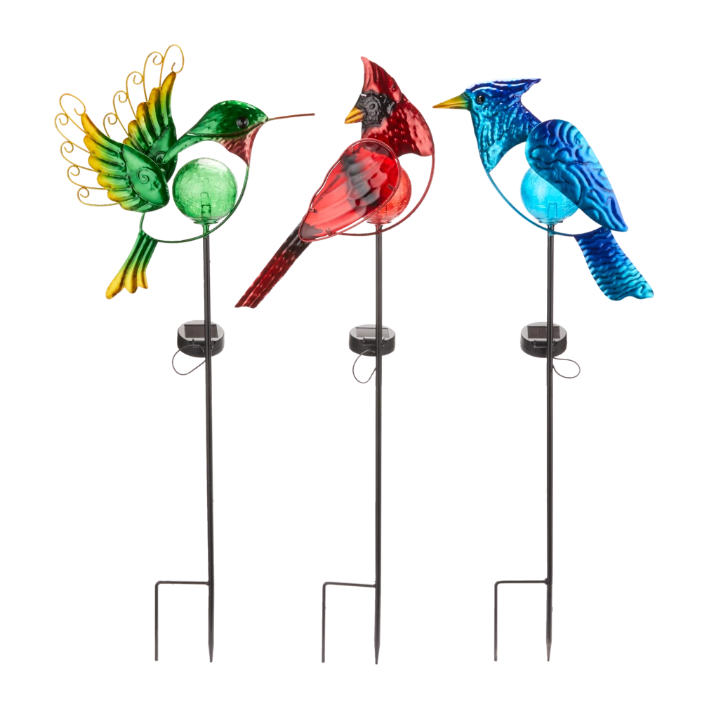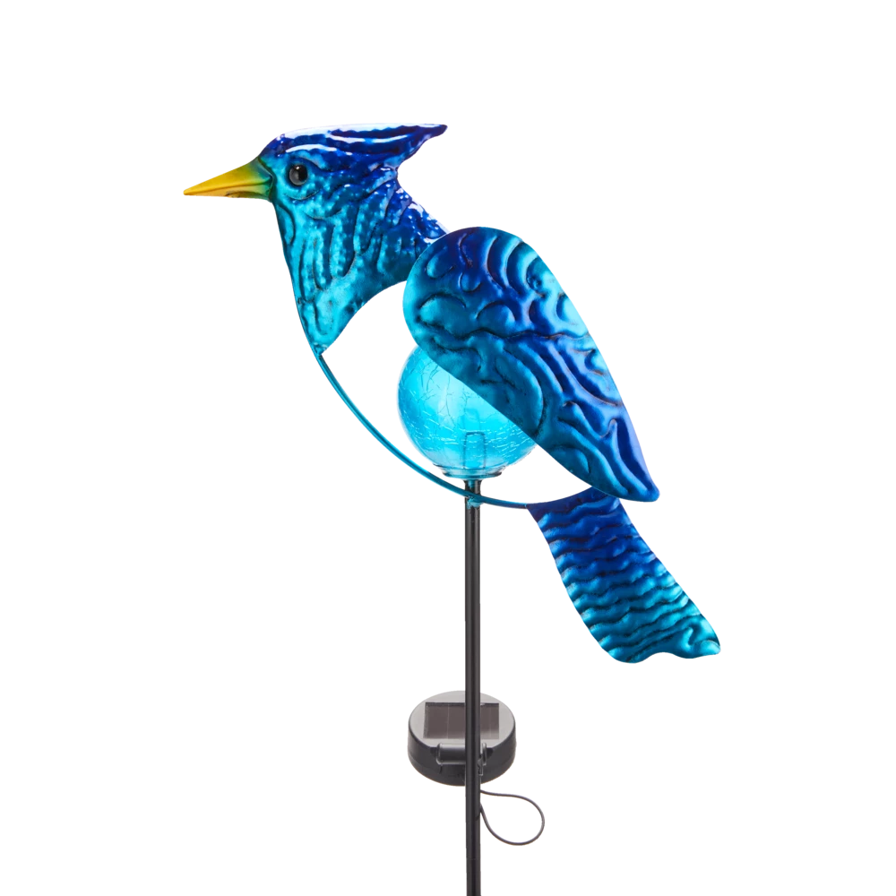 - For Living Blue Jay or Cardinal or Hummingbird Stake features built-in solar powered lights