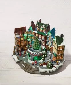 The For Living Village Scene Christmas Town adds holiday magic to your home with its whimsical charm and 43 multi-coloured LED lights. This Christmas village set features a row of warmly-lit houses surrounding a large outdoor tree where Santa Claus and various townspeople are enjoying the festivities. The festive colours and detailed design of this plug-in porcelain Christmas village scene are sure to make it a festive focal piece in any holiday-themed home decor display.