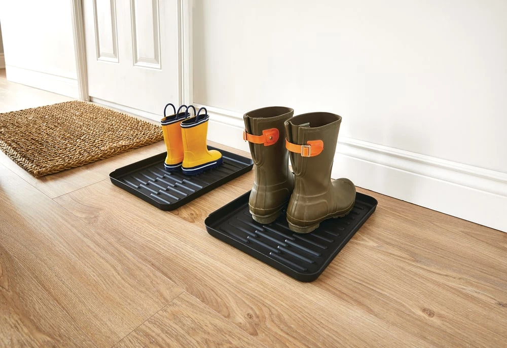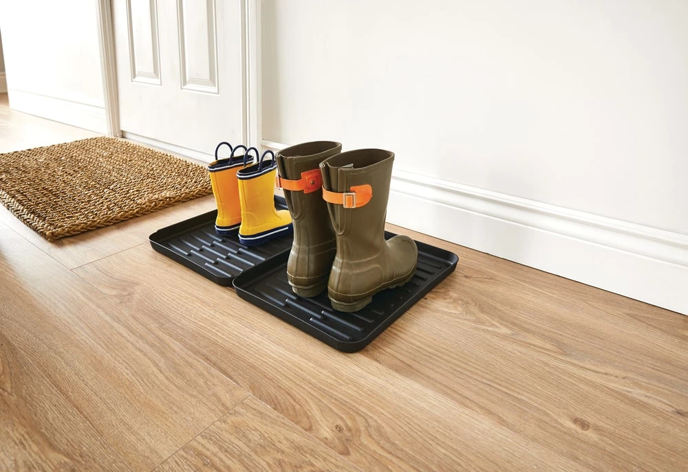 The For Living Modular Boot Trays easily link together to customize the amount of coverage you need to protect your floors. Perfect for children or homes with a uniquely shaped entryway, this waterproof boot tray comes in a pack of two 12″ x 15″ (30.4 x 38 cm) trays and more sets can be added as needed. Made with durable polypropylene, this entryway boot tray protects your floors and walls from rain, slush and dirt.