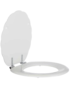 Add a stylish accent to your bathroom with the For Living Moulded Wood Toilet Seat. This durable wood toilet seat features a unique shell-shaped design for a subtle under-the-sea look. The versatile white finish fits seamlessly into any bathroom décor, making this a practical replacement option for any old or damaged toilet seat. This round toilet seat is designed to fit most standard toilets and includes all required mounting hardware for quick and easy set-up.