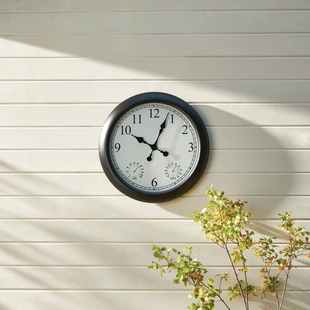 - For Living Outdoor Black and White Clock adds a simple and decorative touch to any outdoor space