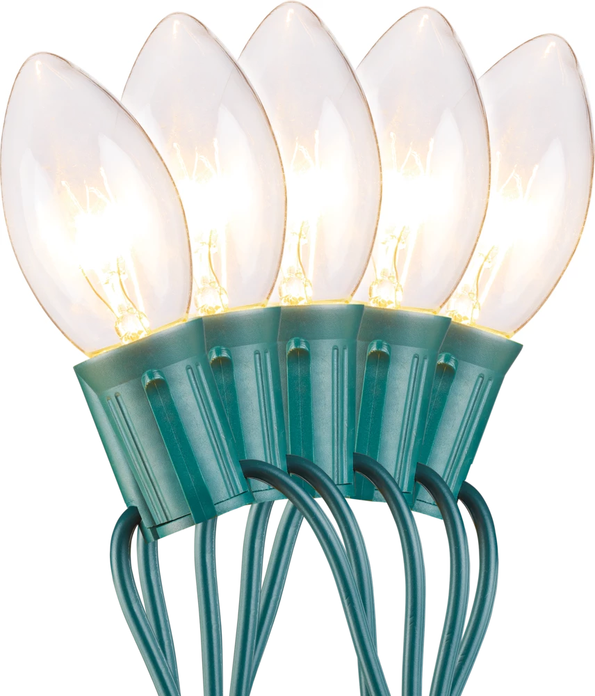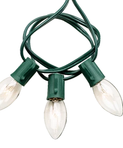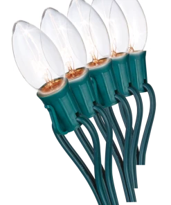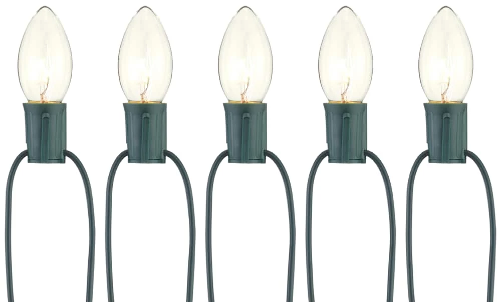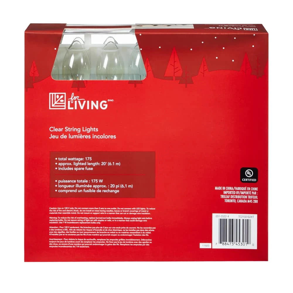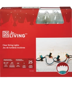 Create a traditional look this holiday season with the For Living Outdoor C9 Incandescent Lights. These incandescent Christmas lights boast a lighted length of 20′ 10″ (6.35 m), making them a great choice for eaves, shingles, trees, bushes, and railings. Equipped with end-to-end connectivity, these clear incandescent outdoor string lights can join another two sets to one outlet. With 175 watts in total, these Christmas lights come with a spare fuse to stay bright.