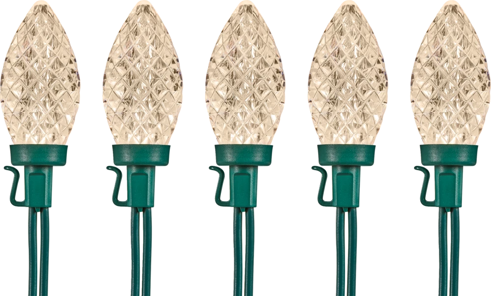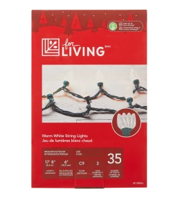 Brighten up your holiday displays with the warm white For Living Outdoor 35 C9 LED Lights. These Christmas LED lights are designed for use along rooflines, pathways, windows, fences and more to deliver an elegant glow. With plugs at both ends, multiple sets of string lights can be connected to deliver as much length as you need (up to 36 sets with a single outlet). These LED lights use up to 90% less energy than incandescent options.