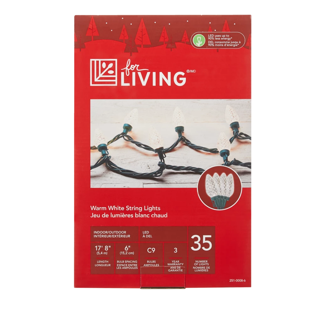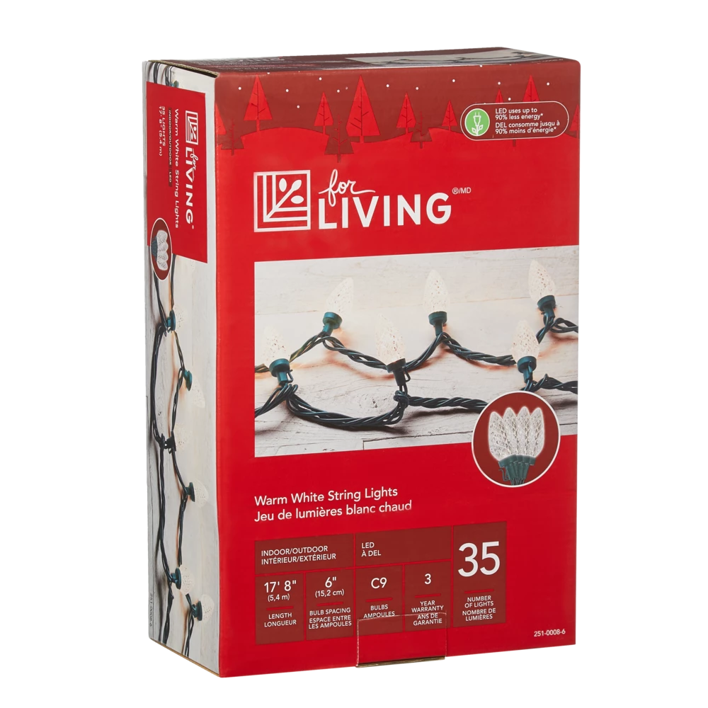 - The For Living Outdoor 35 C9 LED Lights in warm white make it easy to brighten up your holiday display