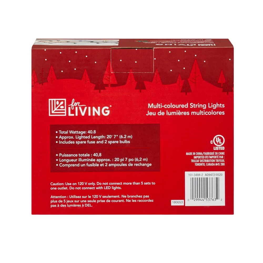 Bring some holiday spirit to your home with the For Living Outdoor 100 Mini Incandescent Lights. They have multiple colours that create a festive look that is sure to work well in any display. They can also be used around banisters and railings, as up to five strands can be linked together. Extra bulbs are included for quick and easy replacement when needed. Add these Christmas string lights to your décor to create an elegant holiday display.
