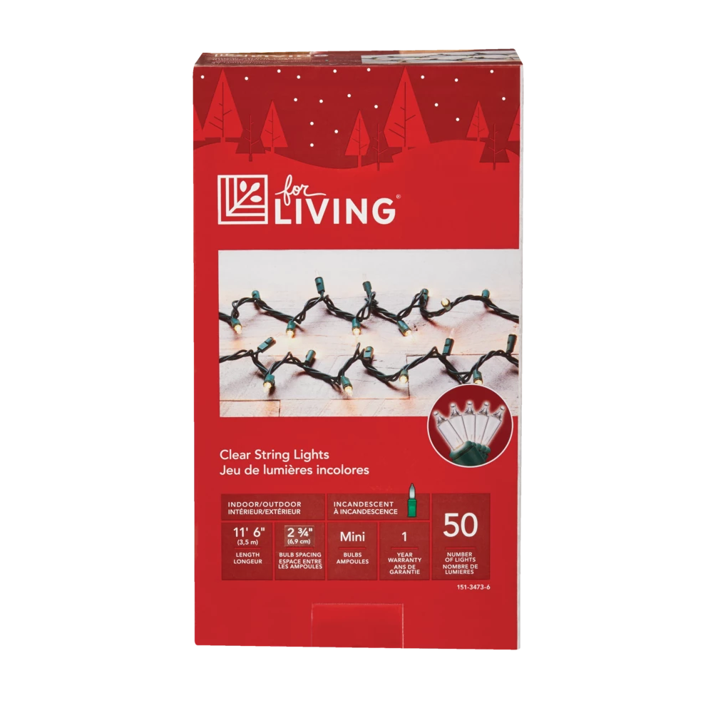 - The For Living Outdoor 50 Mini Incandescent Lights measure over 11′ in length to help you maximize your lighting display