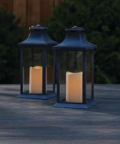 Featuring two lanterns with built-in LED lights, the For Living Outdoor Lanterns will illuminate your backyard space with a warm glow. These lanterns feature a timer-mode that runs for six hours at a time before shutting off to preserve battery life. The durable plastic material will hold up to outdoor conditions, so you can enjoy a candlelit dinner in your backyard or on your patio. Each lantern measures 12.24-inches tall and requires AAA batteries.