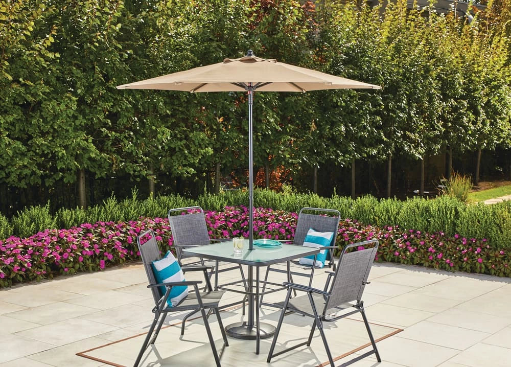 - This For Living Market Outdoor Patio Umbrella in beige adds a great touch to any patio or outdoor space and protect you from damaging rays from the sun