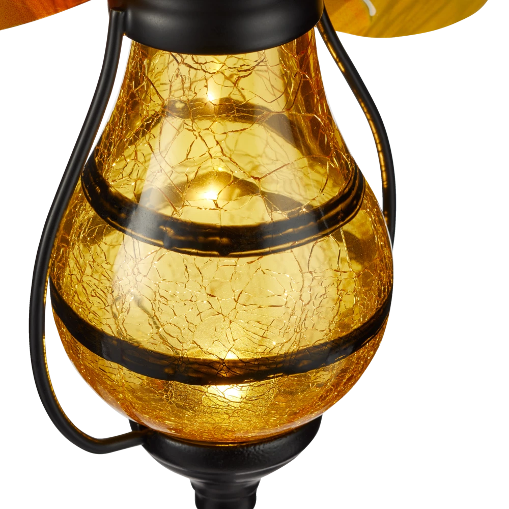 - Crackle glass bee body lights up automatically at night