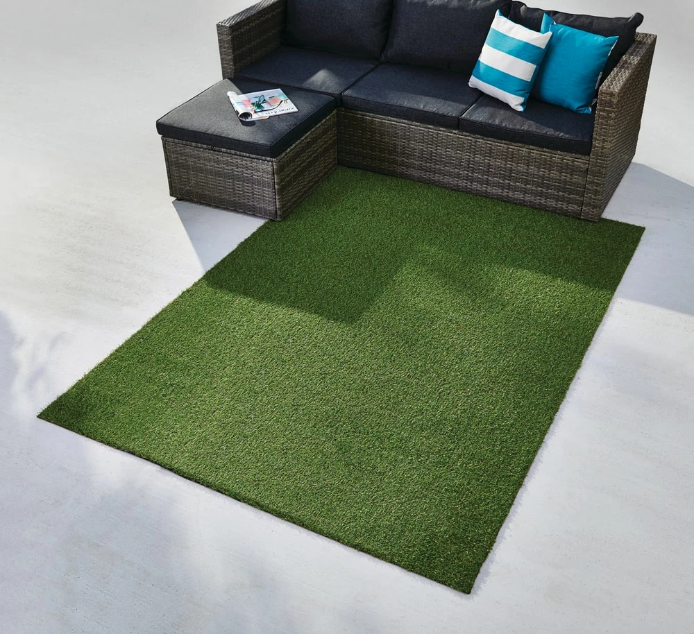 - The FOR LIVING Artificial Turf Area Rug brings a lush green grass look to your outdoor space