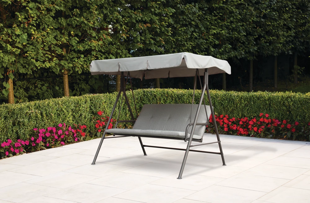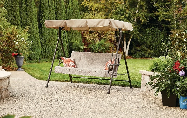 - The For Living Parsons Collection 3-Seater Swing features a heavy-duty steel frame construction that is powder-coated for added durability