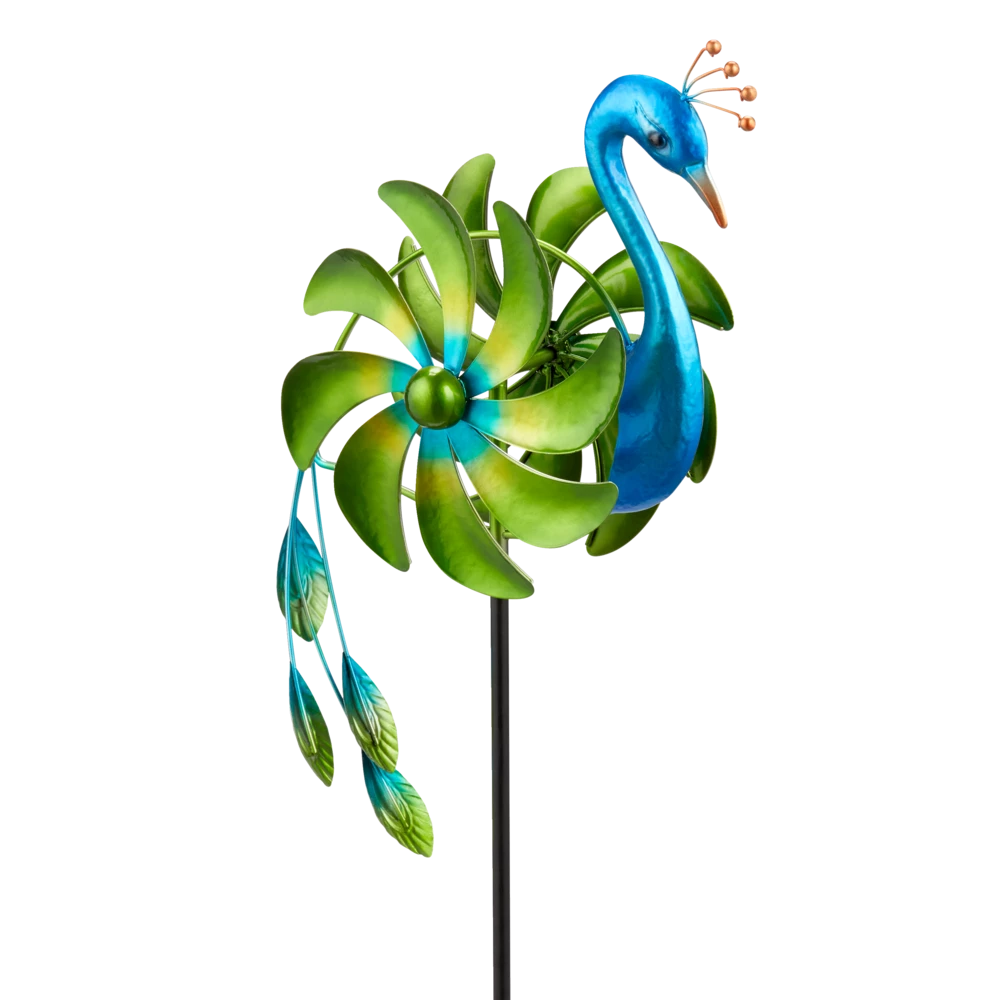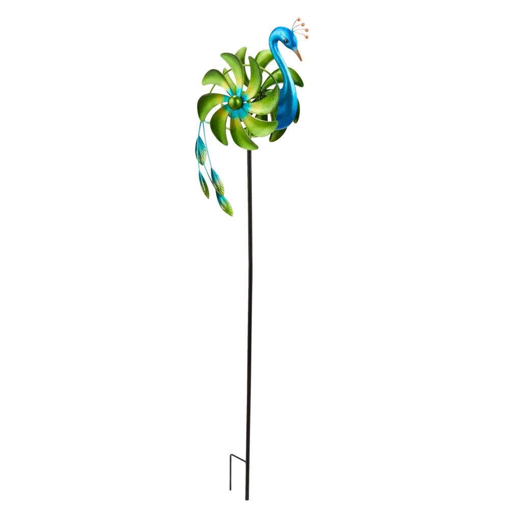 A must-have for any backyard or outdoor living space, the For Living Peacock Wind Spinner & Garden Stake features a sturdy coloured metal construction and weatherproof design for long-lasting outdoor use. This peacock wind spinner showcases a bright, colourful peacock along with two wings that spin 360-degrees in the wind. The two-pronged stake at the bottom makes for easy installation in your lawn, providing a bright and vibrant aesthetic sure to impress.