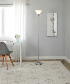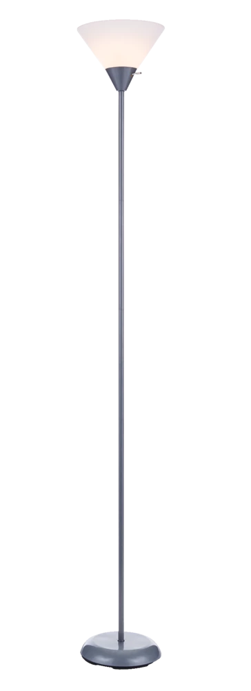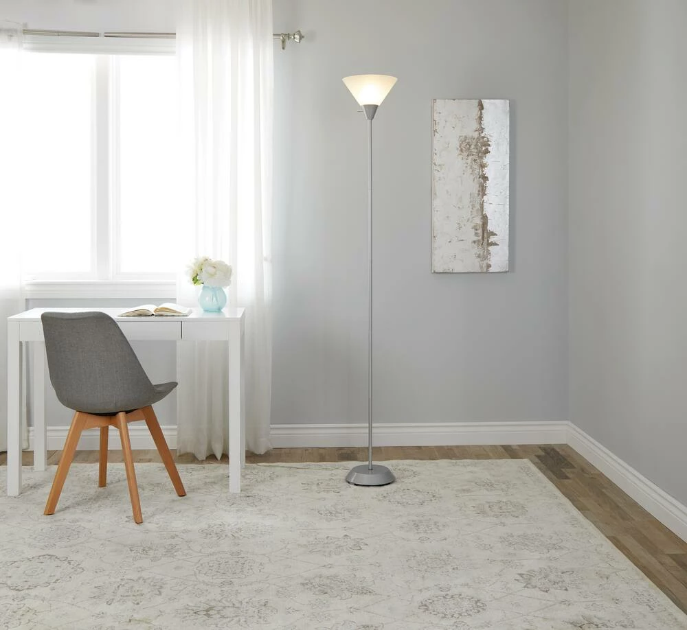 Simple design and sophisticated style make this Likewise One Light Floor Lamp an ideal décor and lighting solution for your home. The silver finish gives a clean look to the lamp and the plastic shade diffuses the light while being durable and visually appealing.