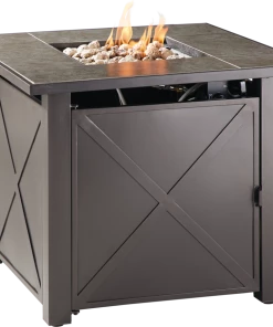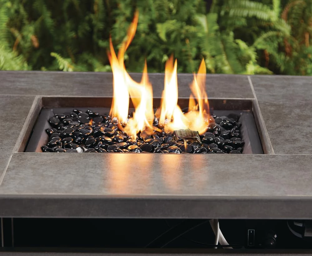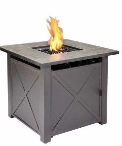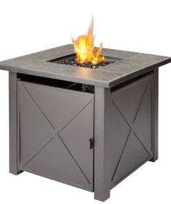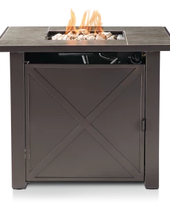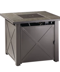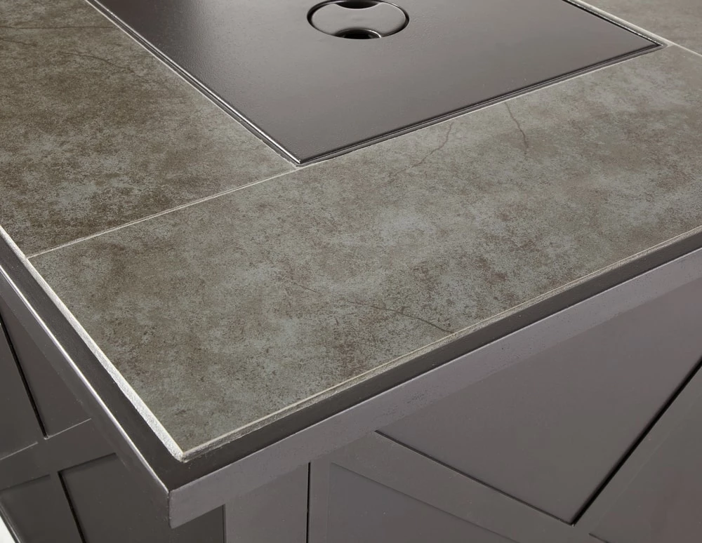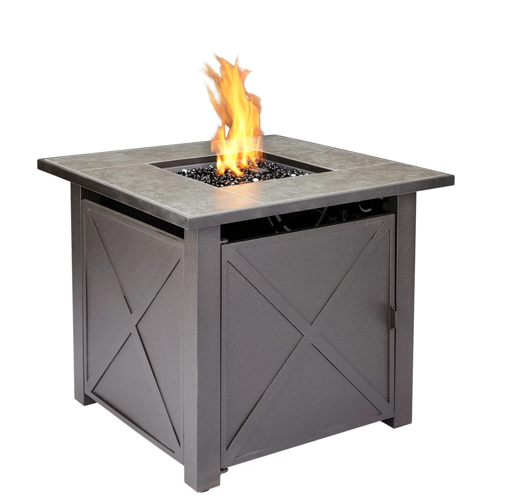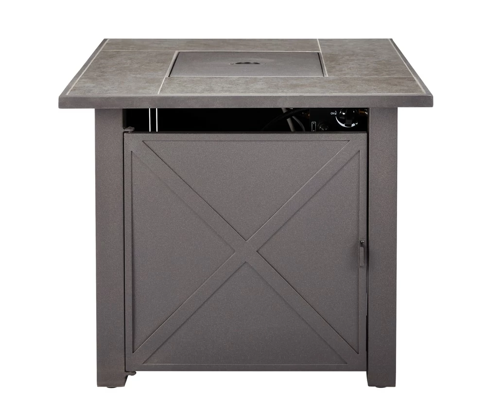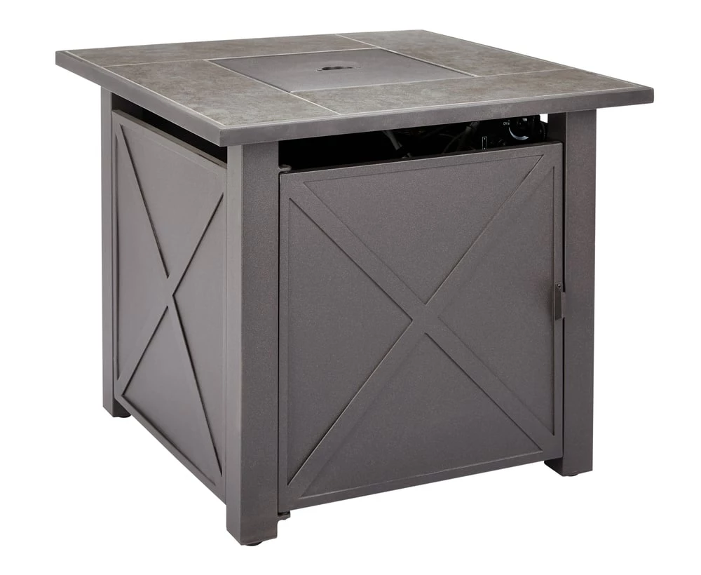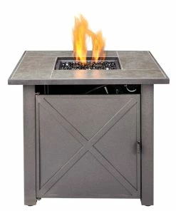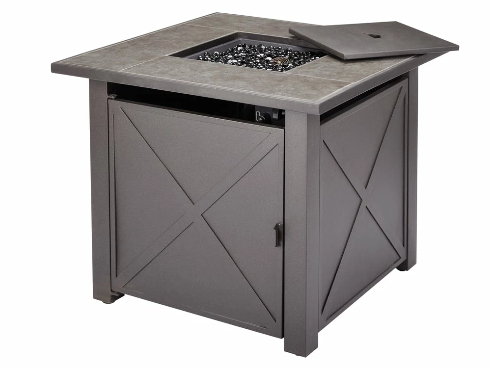 The For Living Plateau fire pit table is a fashionable and functional addition to your outdoor living space. It’s a great spot to gather around with friends and family in any season, whether you’re hosting a backyard get-together or looking to create a cozy outdoor oasis. This sturdy steel fire table is built to last with a durable steel burner so you can enjoy years of comfortable outdoor entertaining. The multi-purpose design features a central gas firepit capable of producing up to 40,000 BTUs and a burner lid that covers the centre for more useable surface space when the firepit isn’t in use. The space-saving tank-in style of this gas fire pit table conceals your propane tank for a cleaner look on your patio or in your yard. A standard 20lb (9 kg) propane tank, sold separately, is required for operation. Black fire glass beads are included with the Plateau firepit table for a sleek, modern look and to help amplify the heat with their reflective surfaces. An attractive “X” design on the side panels adds subtle style to this backyard fire pit without distracting from the main attraction—the warm glow of the fire.