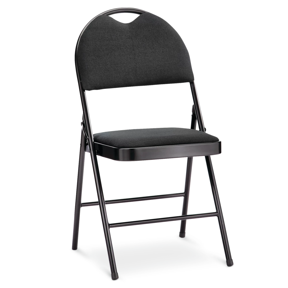 This For Living Designer Hi-Back Folding Chair in black offers extra seating when you need it around your home or office. It comes fully assembled and ready to use, so all you have to do is unfold it and it’s good to go. This padded metal folding chair offers a high-density foam seat and back for superior comfort you can feel, while also providing the convenience of a fold-up design that can be easily stored away when not in use.
