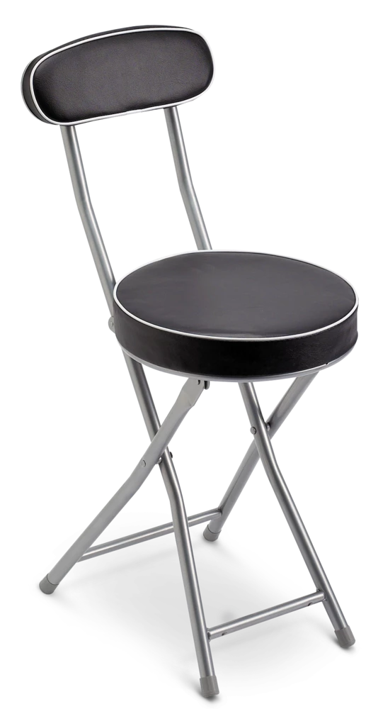 Add extra seating wherever it’s needed with this For Living Folding Stool with Back Support. It features a padded seat and back, offering comfort for guests during a party, meeting or get-together. The black finish easily coordinates with any décor, while the white piping delivers a beautiful contrast that adds to the modern look. When not in use, this metal folding stool can be easily stashed away in a closet or corner.