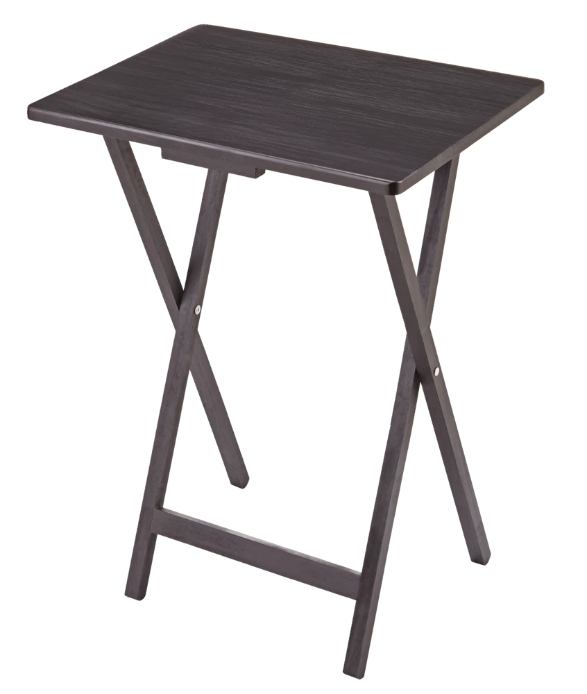 The For Living Espresso TV Tray is a simple and stylish solution when you need an extra dining or work surface in your home or office. Featuring a durable all-wood construction, this folding TV tray comes in a beautiful espresso finish to match or accent your room’s decor. Lightweight and portable, this folding side table has bendable legs and a collapsible top that allow for easy storage in even the most compact living spaces.