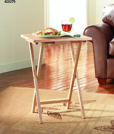 The For Living TV Tray is designed to make dinner time or snack time easy to enjoy while watching TV. It features a beechwood finish that easily coordinates with any home décor. This wood folding TV tray has a sturdy construction designed to hold food and drinks, or a laptop, games or other items you want close by. When not in use, this folding table can be stored neatly out of the way until you need it again.