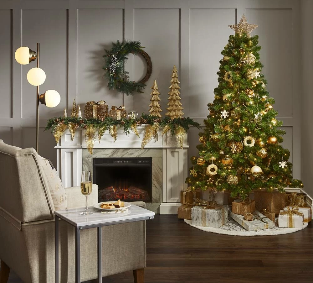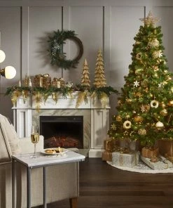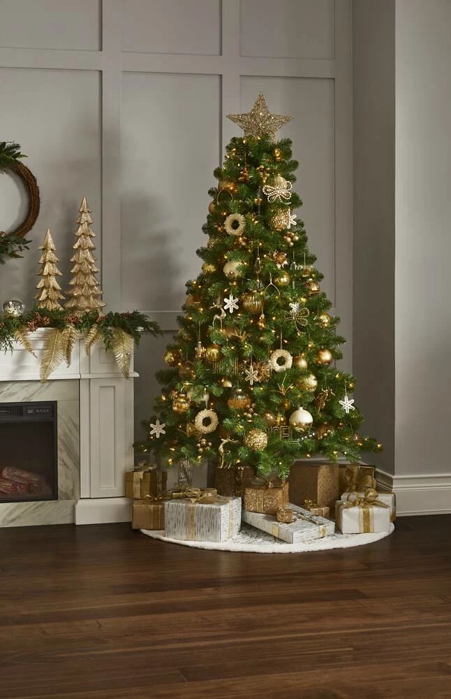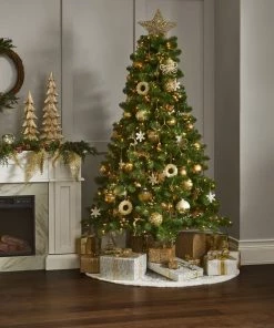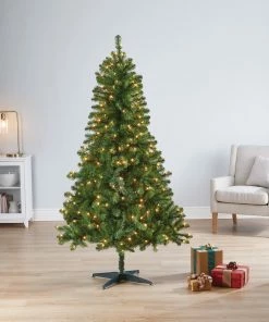 The For Living Inglis Pre-Lit Incandescent Christmas Tree adds effortless holiday charm to any room in your home. Take the stress out of trimming the tree and opt for this 6.5-foot artificial Christmas tree, complete with 494 plush branch tips and 250 incandescent lights. An artificial Christmas tree can be a smart investment, saving you time and money over the years while adding to the magical holiday memories you create with your friends and family. This tree is lightweight and offers easy assembly so you can get right to the decorating – no more detangling or stringing lights. Go ahead and put the tree up as early as you’d like, this pre-lit Christmas tree is going to last. You won’t have to remember to add water to the base or sweep up messy dropped needles, your PVC Christmas tree is virtually maintenance free. The incandescent Christmas tree is recommended for indoor use only. To create a fuller look, remember to fluff out the branches as you set up your new For Living Pre-Lit Inglis Christmas Tree.