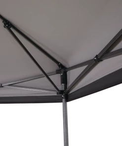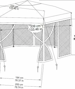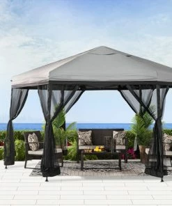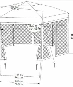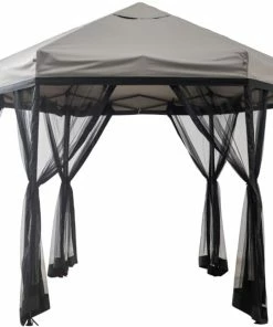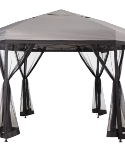 The For Living Quick-Set Hexagon Outdoor/Patio Soft-Top Gazebo works as both a permanent fixture in your backyard oasis or easy-to-assemble pop-up for special events or summer BBQs. The hexagon shaped gazebo is crafted with a weather-resistant, fire-retardant polyester fabric canopy that easily complements the natural tones of your outdoor space. A gazebo is the perfect solution for lovers of the outdoors who seek to enjoy their space through rain or shine. The gazebo includes attachable gazebo netting to help keep insects away, which is especially convenient to keep food and children safe. A beautifully bright backyard is great for the plants and garden, but can be difficult to enjoy throughout the hot summer months without some trees for shade. Easily setup the gazebo over your patio furniture for instant shade, or around the kids’ play area to help protect them from harmful UV rays. Spruce up the outdoor gazebo by hanging your favourite string lights or décor to add a special touch. Although this gazebo isn’t suited to stay outside year ’round, it’s easy enough to disassemble and store for the winter.