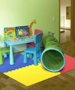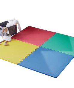 The For Living Kids’ Reversible Foam Tiles come in a pack of four multi-colour tiles that interlock together to make a cushy waterproof mat for your child’s play room or bedroom. These foam tiles absorb shocks to provide comfort underfoot for sensitive little feet. Easy to install, these interlocking foam tiles are lightweight and travel-friendly so you can bring them to grandma’s house too. Each tile measures 24″ x 24″ (61 x 61 cm).
