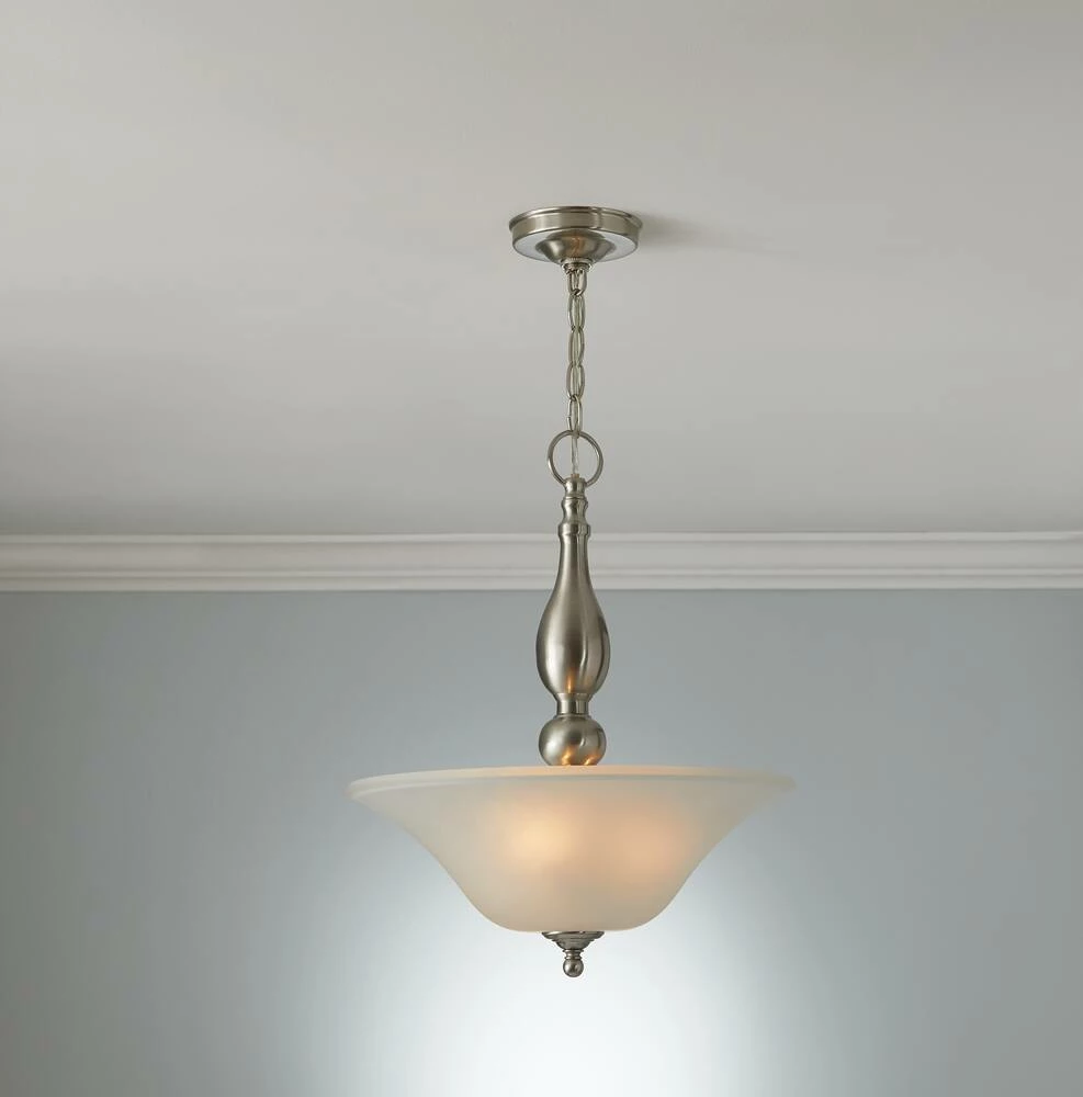 Incorporate a new decorative finish to the room of your choice with the For Living Rosanna 3-Light Ceiling Pendant Light. Whether it’s hanging in your dining room, foyer, or another room of your choosing, this pendant lighting adds a beautiful touch with its brushed-nickel finish and frosted glass shade. Impress your guests as they enter your home and immediately notice it in your foyer, or incorporate it into your dining room to create an ambiance suited to you. This pendant light fixture will set the right mood whether you’re gathering as a family for dinner after a long day, helping your children with their homework, or getting together during the holidays and catching up with extended family and friends. This hanging lamp requires three 60W (max.) A19 shape E26 base bulbs which are sold separately and can be adjusted to a drop height between 19″ and 57″. All the mounting hardware, instructions, and base are included to make the installation process as straightforward as possible. Assembly is required, and please handle this dining light fixture with care.