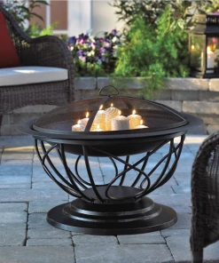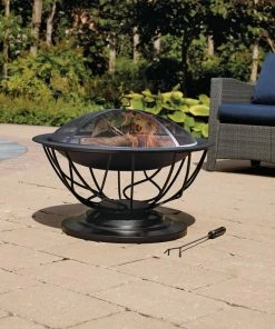 The For Living Savona Round Wood Burning Outdoor Fire Bowl/Fire Pit will be an eye-catching and practical addition to your backyard oasis. It’s made of durable stainless steel with a black finish so it will fit in with any outdoor furnishings you already have. Easy to move around your space, this fire bowl has a lovely scroll-patterned base mounted on a sturdy plate for proper support of the log-laden fire pit. The lift-off mesh screen on this wood-burning fire bowl prevents sparks and flames from flying out and burning those enjoying the heat and ambiance of the fire. The fire bowl/fire pit comes with a convenient fire poker so you can safely rearrange the logs as they burn. While it is so enjoyable to sit around a fire pit in the evening, there may be times when you simply want a little extra ambiance before turning in for the night. Just place a few candles in the bowl, which will give you flickering flames on a much smaller scale. They will be quick and easy to extinguish when it’s time to say goodnight. To protect your fire pit over the winter, a cover is available separately.
