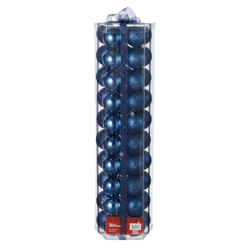 These For Living Blue Shatterproof Ornaments help dress up your Christmas tree with style. The blue plastic ball ornaments shine and shimmer with a variety of textures to help create a warm and inviting festive atmosphere. With 50 decorative ornaments, this set has more than enough to make a stylish seasonal statement on your tree, mantel, or displayed in a clear bowl. The safe and durable shatterproof plastic helps provide many seasons of enjoyment.