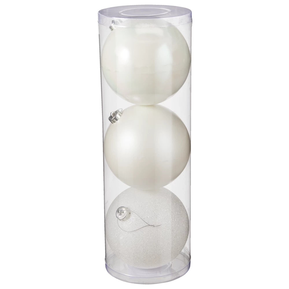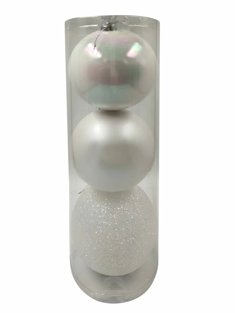 - The For Living White Large Shatterproof Set includes 1 sparkly, 1 shiny and 1 matte ball for a mix of textures on your tree