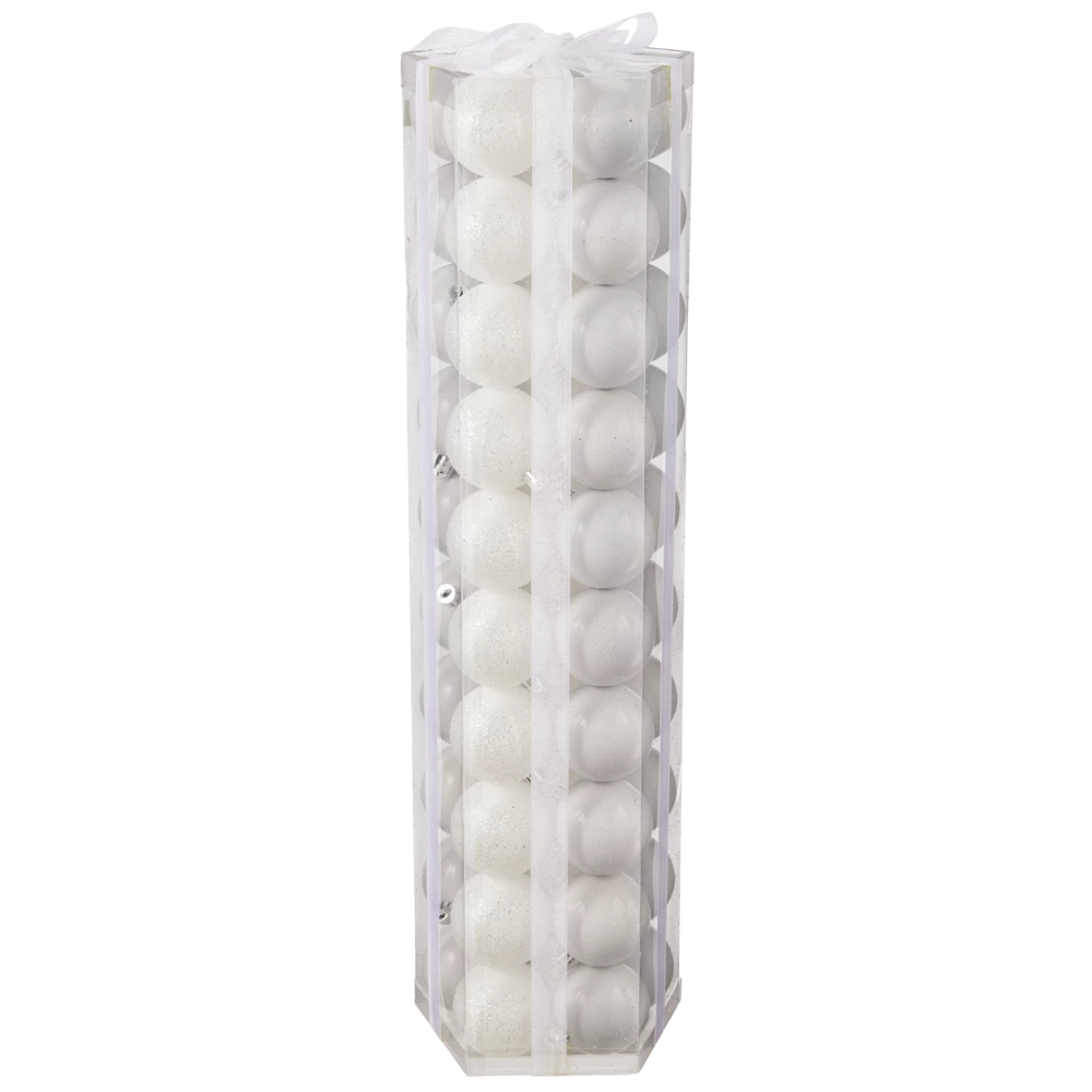 Whether you’re building your first Christmas decoration collection or you’re already a seasoned Yuletide pro, this set of 50 For Living White Shatterproof Ornaments is the perfect way to bring holiday cheer to your home. Great for lavishly decorating your trees or showcasing in decorative bowls, these 60mm ball ornaments are made of durable shatterproof plastic and a stylish white exterior, so you never have to choose between form and function.