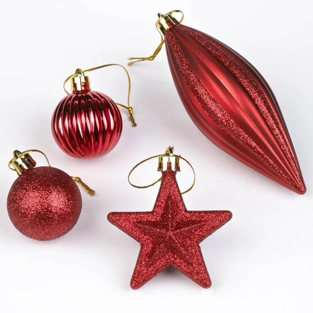 These For Living Red Ornaments add some seasonal sparkle to your tree with a variety of shapes, sizes, colours, and textures. Elevate your Christmas decorating experience with these hanging ornaments that are great for trimming your tree and mantel or hanging in between staircase spindles. Made from quality materials and available in assorted styles and designs, these shatterproof red Christmas hanging ornaments are a durable and attractive addition to your holiday décor.